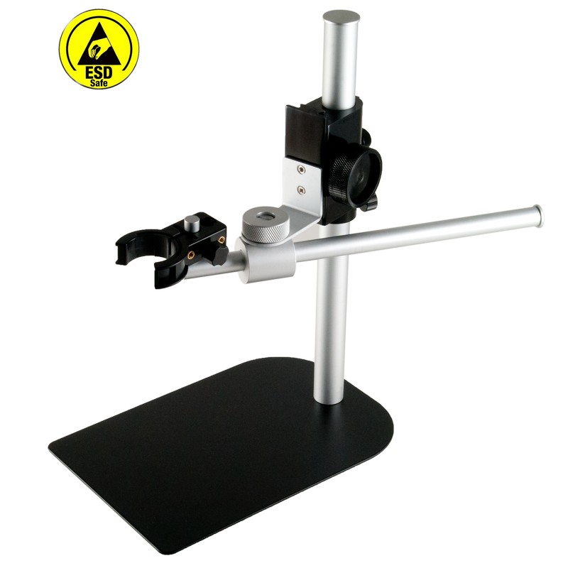The MS36BE has a horizontal beam to enable additional flexibility in the horizontal plane. The MS36BE stand is designed for use with the complete line of Dino-Lite ESD-safe digital microscopes and offers many fine adjustment features. This sturdy and versatile stand utilizes an adjustable sliding horizontal boom arm with up to 25cms of reach and 360 degrees rotational capability making it ideal for inspection applications where the ability to extend out over and across a specimen is required. The MS36BE provides smooth horizontal and vertical adjustment positioning. It is manufactured from a combination of resilient stainless steel and lightweight recycled aluminium making it very portable.