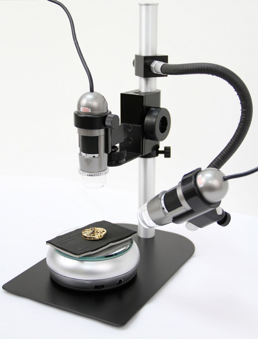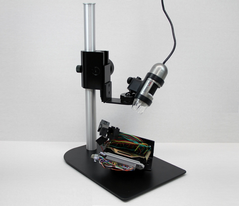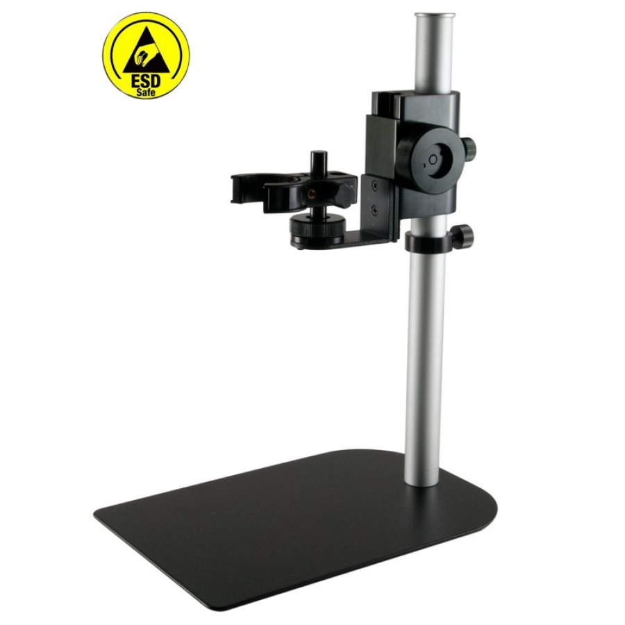 The MS35BE is a stable vertical desktop stand that was designed to be used with the complete line of Dino-Lite ESD-safe digital microscopes. It provides 360 degrees of horizontal axis rotational perspective and as much as 20 cm of vertical working distance from the object. The Dino-Lite holder is mounted onto a ball and socket jointed post, which allows for a maximum of 45 degrees of adjustable lateral viewing angles. The precision components of this stand provide smooth adjustment and positioning in a well balanced and stable ergonomic design. The MS35BE is manufactured from a combination of resilient stainless steel and lightweight recycled aluminium making it a very portable yet stable stand solution.