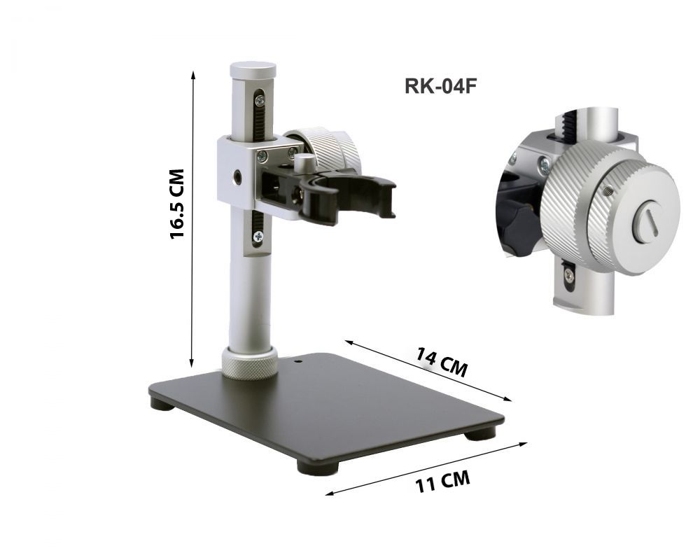 The Dino-Lite RK-04F stand has a robust, lightweight and compact rack design. Additionally it has an integrated fine focus adjustment knob to make focusing easier and more precise. The RK-04F is the perfect accessory for users requiring flexibility.