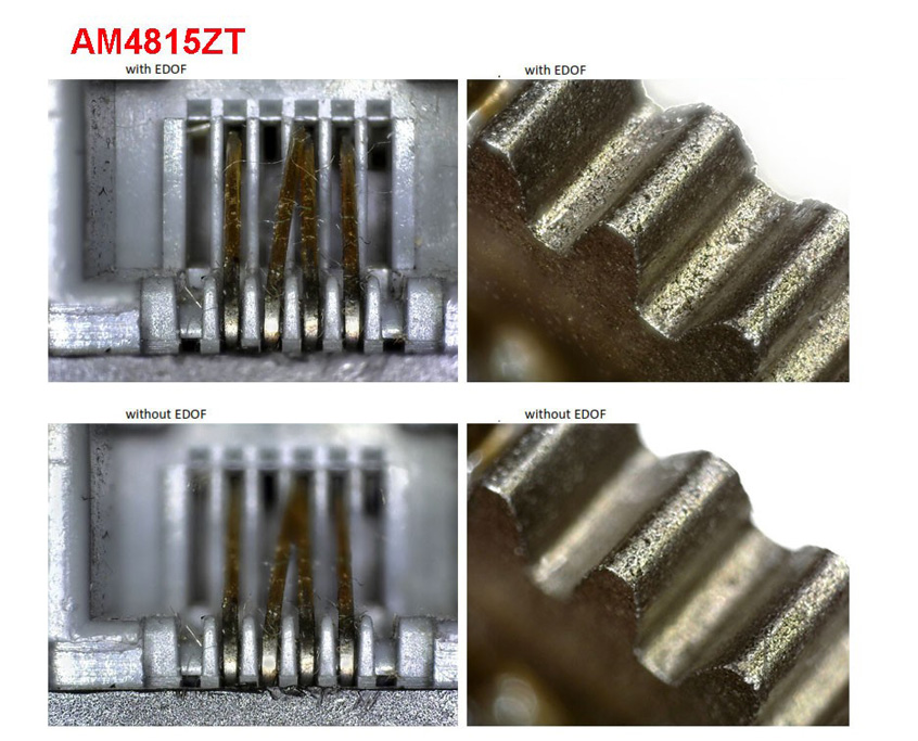With the Extended Dynamic Range (EDR) feature, the details of darker or brighter areas within the object can be revealed by stacking images at different exposure levels. The Extended Depth of Field (EDOF) feature automatically stacks images at different focus level to improve the depth of field on rough or uneven surfaces. Different caps are supplied with the microscope making the Dino-Lite Edge the perfect choice for any professional application.
