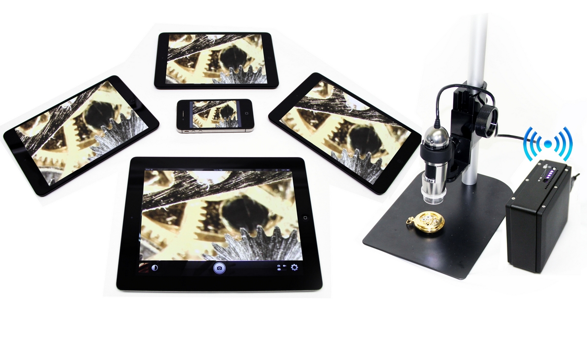 The WiFi Streamer is ideal for fieldwork or presentations. Stream from one Dino-Lite to multiple devices. The MSVC72W has a built-in battery and can be used anywhere to create a WiFi signal for streaming the Dino-Lite live images.