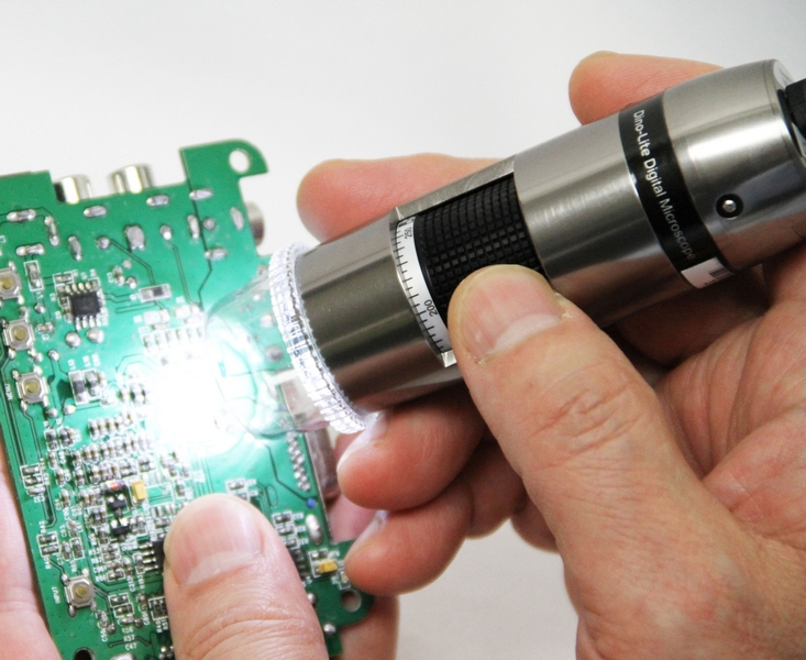 The AM5018MZT is the ideal choice in situations, where real time images are vital, such as working on PCB's or other miniature objects. By tapping the Microtouch sensor on the microscope, the image can be frozen for inspection of important details and by pressing the Microtouch sensor for 2 seconds the LEDs can be switched on and off. The aluminium housing offers enhanced protection and durability and has the best look and feel. The built-in adjustable polarizer reduces glare and reflection on shiny objects, such as metal surfaces, electronics, plastics etc.